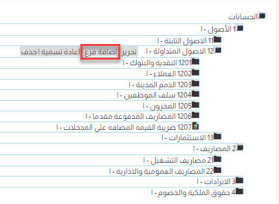 1- إضافة حساب: ادخل على “مجموعة الحسابات” التي تريد إضافة حسابات فرعية لها.