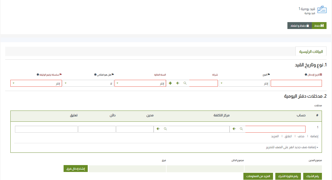 - تسجيل قيد اليومية: قبل تسجيل قيد اليومية، قم بتحديد طرفي القيد (الطرف الدائن والطرف المدين).