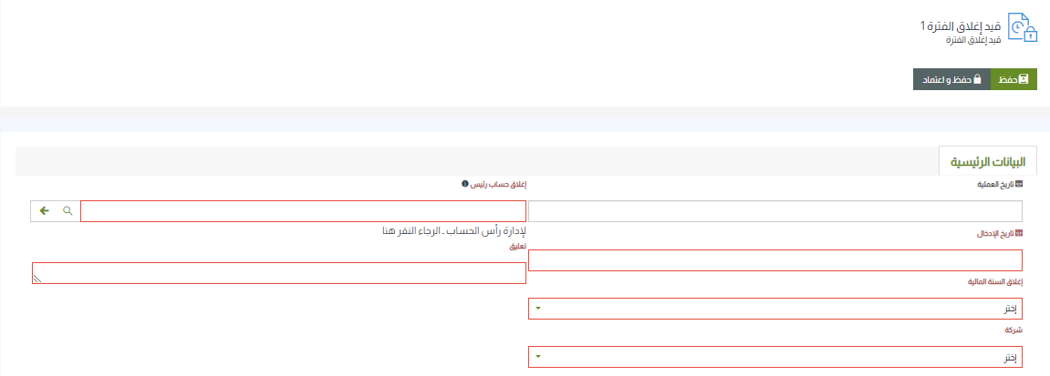 - قيد إغلاق الفترة: يستخدم قيد إغلاق الفترة مرة واحدة فقط وذلك في نهاية العام لإغلاق الفترة المالية واحتساب ربح الفترة واستخراج التقارير المالية السنوية
