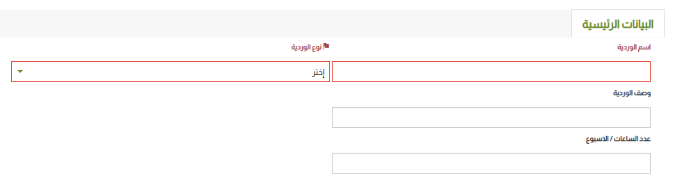 2- ادخل البيانات الرئيسية الخاصة بالوردية التي تريد إضافتها