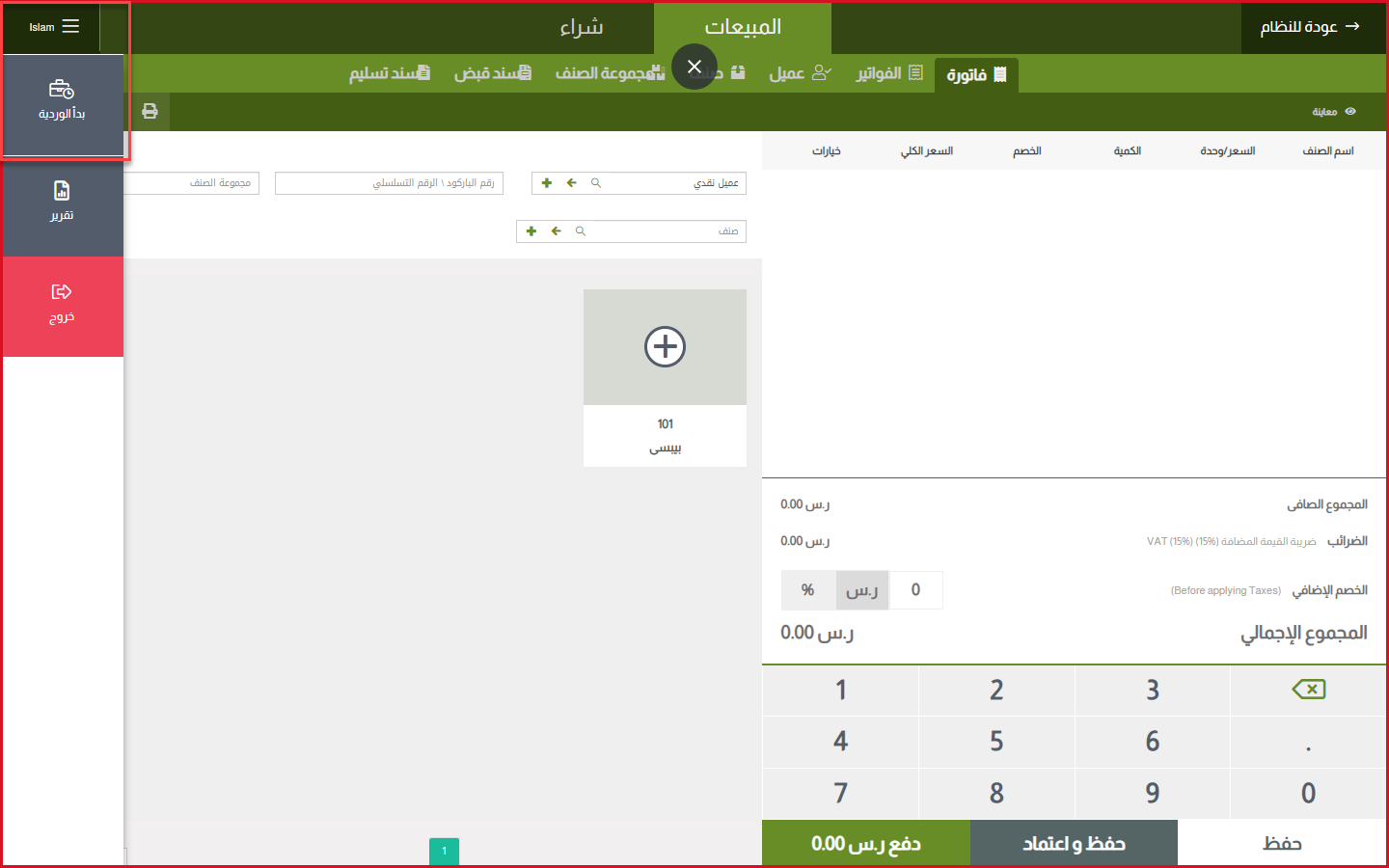 • عميل: عادة مايكون العميل نقدي وهو مضاف مسبقا للنظام.