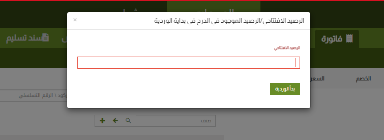 2- ادخل الرصيد الإفتتاحي المتاح عند بدأ الوردية، ثم انقر على زر “بدأ الوردية”.