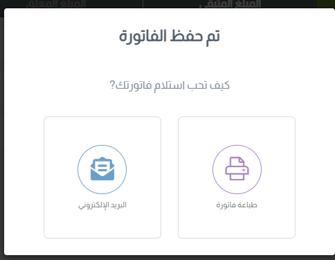 5- اختر الطريقة التي تحب استلام فاتورتك بها بعد الحفظ والاعتماد