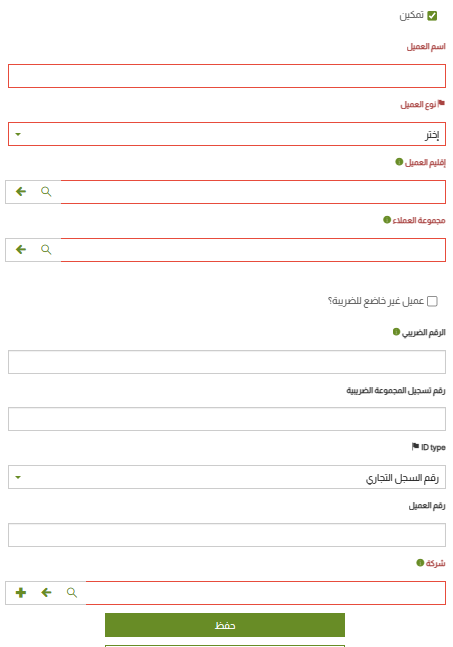 • حفظ: انقر على هذا الزر؛ لتقوم بحفظ العميل الذي ادخلت بياناته.