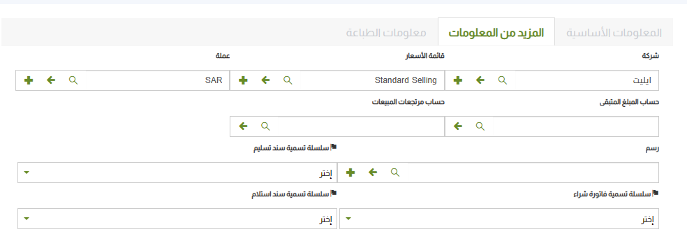 • مجموعة العملاء: ادخل المجموعة التي ينتمي لها العميل.