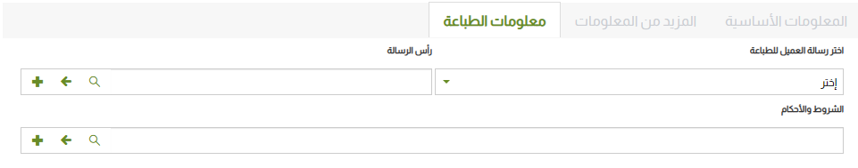 • اختر رسالة العميل للطباعة: اختر الرسالة التي ستظهر للعميل عند الطباعة.