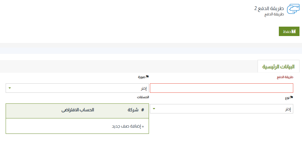 • طريقة الدفع: ادخل طريقة الدفع التي تريد إضافتها.