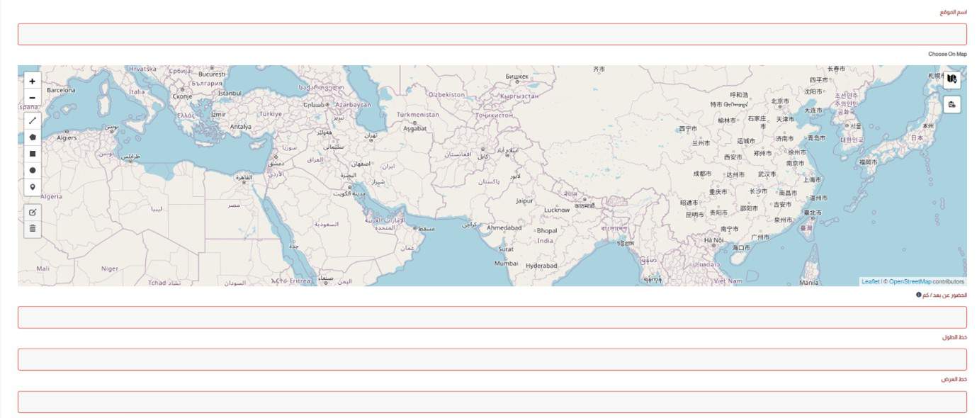 - حدد الموقع الجغرافي على الخريطة المبينة في الشاشة، وادخل اسم الموقع والنطاق الذي يسمح فيه تسجيل بصمة حضور/انصراف للموظفين.