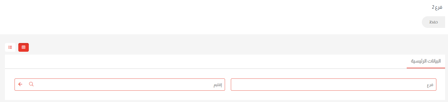 بعد الضغط ستظهر الواجهة التاليه و التى تتيح للمستخدم ادخال اسم الفرع من خلال حقل -فرع – و بالضغط على زر حفظ الملون بالازرق بعد الانتهاء من ادخال البيانات يقوم النظام بحفظ الفرع داخل النظام