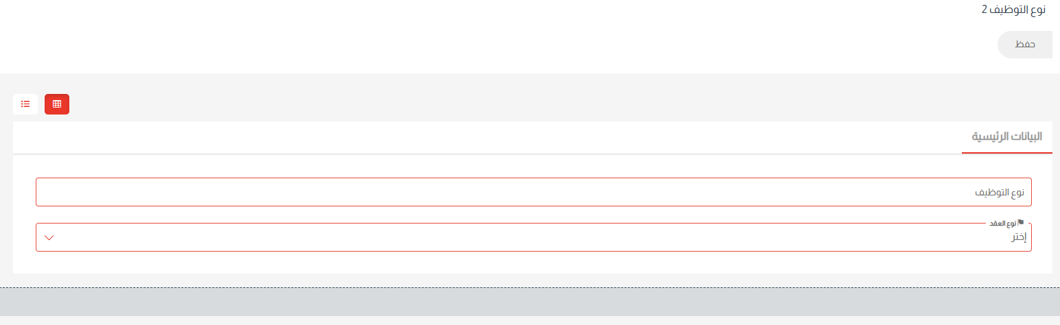 بعد الضغط ستظهر الواجهة التاليه و التى تتيح للمستخدم اضافة نوع التوظيف من خلال حقل نوع التوظيف