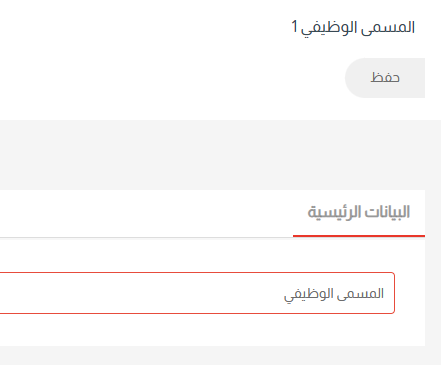 بعد الضغط ستظهر الواجهة التاليه و التى تتيح للمستخدم اضافة المسميات الوظيفية من خلال حقل – المسمى الوظيفى – و بالضغط على زر حفظ يقوم النظام بحفظ المسمى الوظيفى داخل النظام