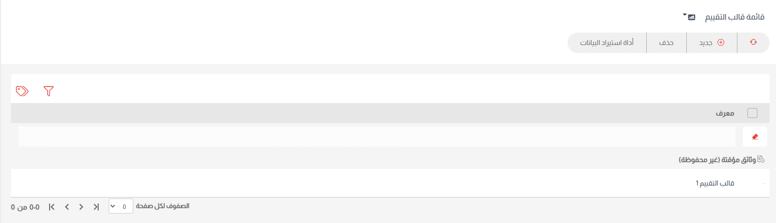 - لا يجوز حذف قالب التقييم المستخدم فى النظام