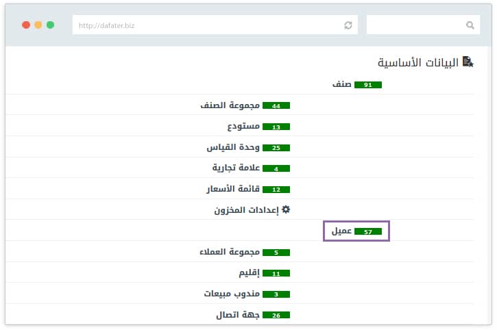 إعدادات العميل والصنف والمورد