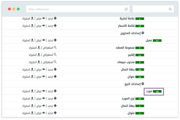 صفحة الإعدادات – الموردون