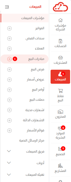 لتبدأ دورة مبيعات، اذهب إلى أيقونة المبيعات فى البرنامج “دفتر البيع“. داخل صفحة دفتر البيع، اضغط على مبادرة بيع.