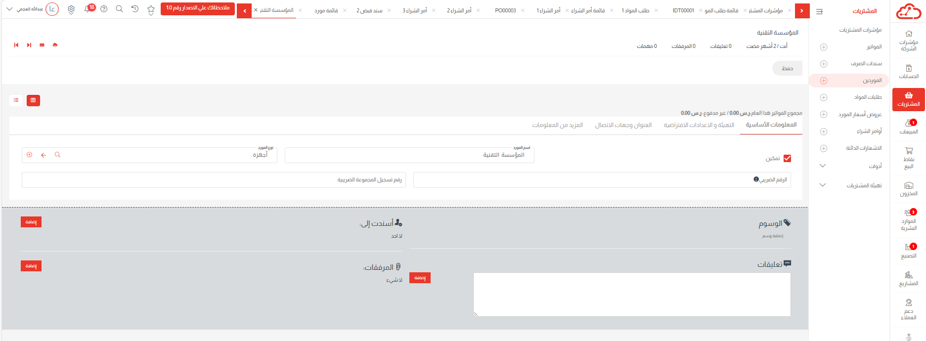 دورة المبيعات والمشتريات المستندية في برنامج دفاتر ERP السحابي