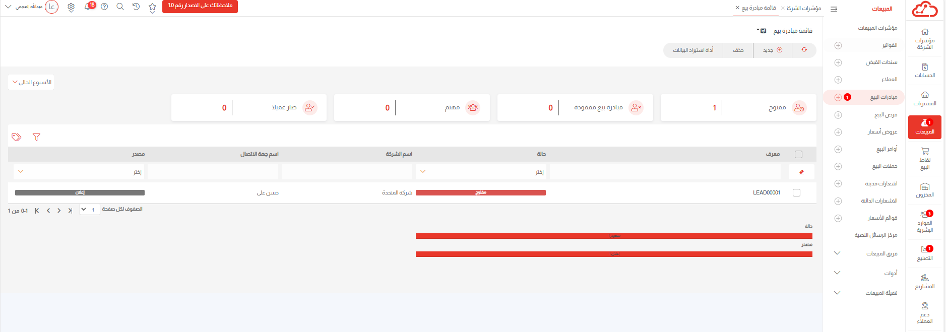 يمكنك أيضا إنشاء فرصة مباشرة من صفحة المبيعات.