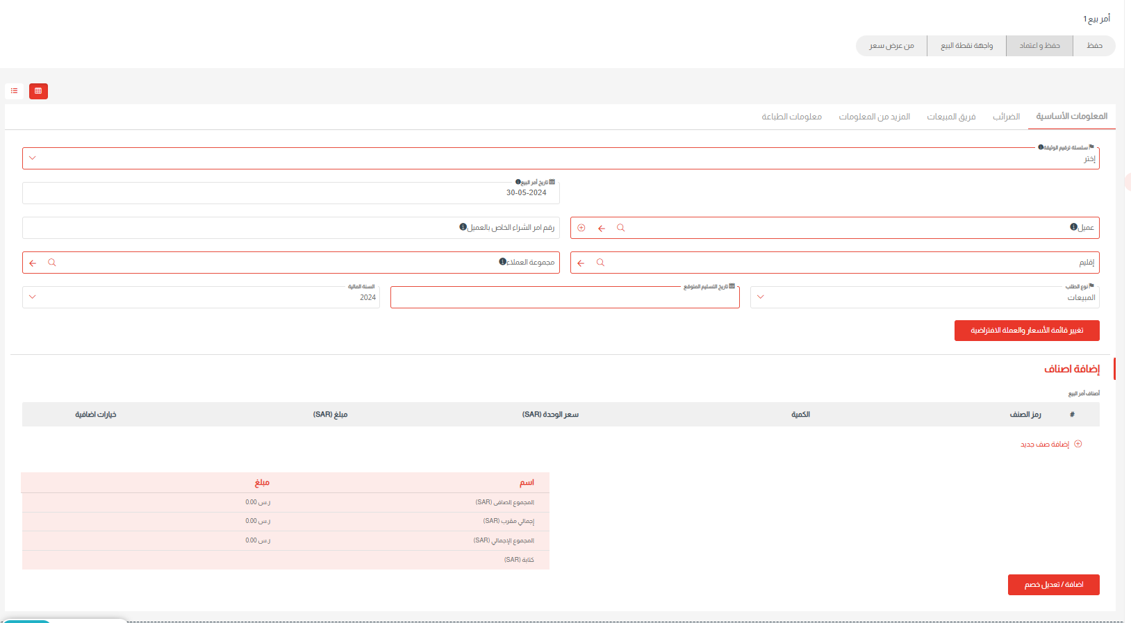 يمكنك أيضا انشاء تسعيرة مباشرة من صفحة المبيعات.