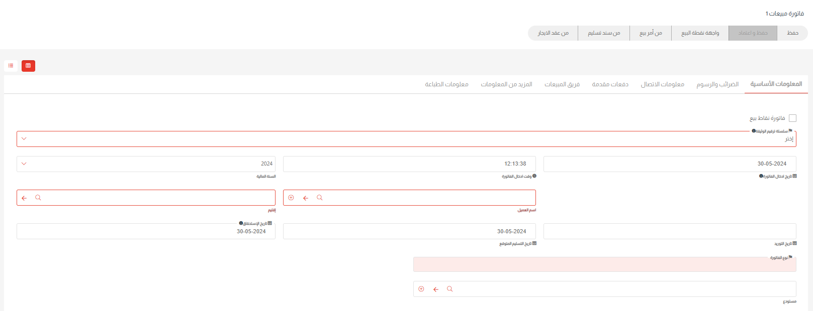 قم بحفظ وتسجيل إيصال الاستلام للقيام بإنشاء فاتورة بيع. يمكنك أيضا إنشاء فاتورة من أمر البيع.