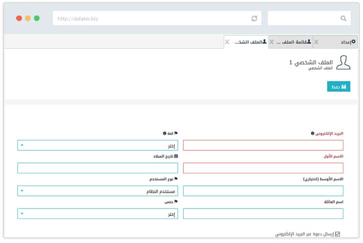 لإضافة مستخدم جديد، انقر على زر جديد وأدخل بيانات المستخدم التالية: