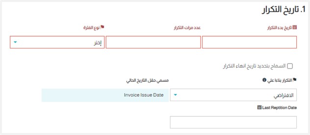 1. ادخل تاريخ بداية تكرار الوثيقة في حقل “تاريج بدء التكرار”.