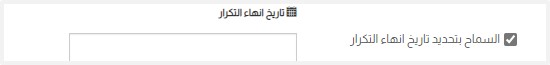 4. قم بالتأشير على مؤشر “السماح بتحدبد تاريخ انهاء التكرار”؛ لتتمكن من إدخال التاريخ الذي سينتهي فيه تكرار الوثيقة المحددة. علماً بأنك تدخل تاريخ انتهاء التكرار في الحقل الذي يظهر بعد التأشير على هذا المؤشر، كالتالي: