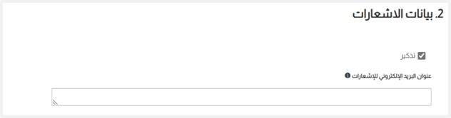 6. إذا كنت ترغب في تلقي إشعارات للتذكير قبل أو عند موعد تكرار الوثائق، قم بالتأشير على مؤشر “تذكير”؛ ثم ادخل عنوان بريدك الإلكتروني في حقل ” عنوان البريد الإلكتروني للإشعارات” الذي سيظهر في أسفل الشاشة.